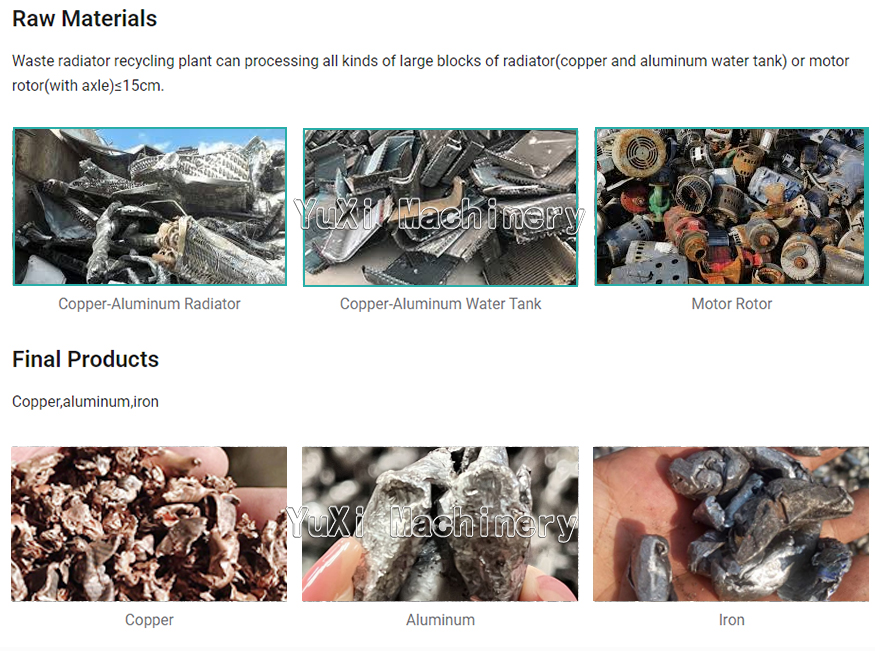 Raw Materials:Scrap motor rotors, stators, wire harnesses and transformers