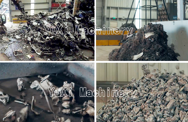 1.Pre-processing and shredding: A dual-shaft shredder shreds the car shell into small pieces, and a metal crusher further refines the material.